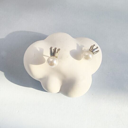 Terse パールのお顔の上に載ったキュートな王冠ピアス 1ペア 耳元に小さな気品をプラス プレゼント ギフト ユニーク かわいい クラウン 王様 キング SE0051A
