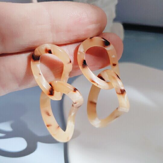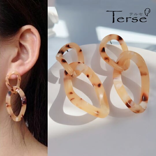 Terse 大振りダブルリング リゾート ピアス 1ペア レディース オレンジ 軽い着け心地が魅力 ゆらゆら べっ甲柄 アクリル お出かけ イベント デート パーティー お呼ばれ 女子会 食事会 普段使い プレゼント べっこう柄 se0222aor 秋
