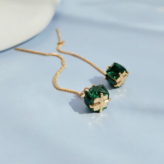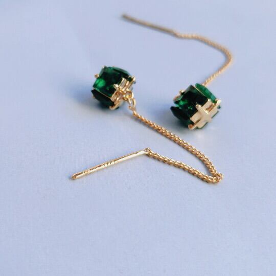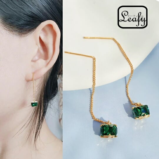 胸元に華やぎをプラス、Leafyのエメラルドグリーンのジルコニアが上品に揺れるアメリカンピアス!