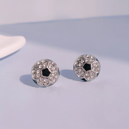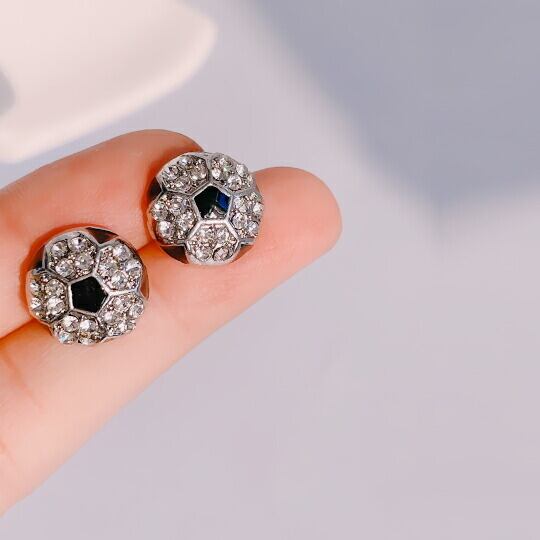 胸元に華やぎをプラス、Leafyのきらきらラインストーンのサッカーボールピアス!
