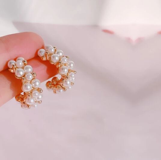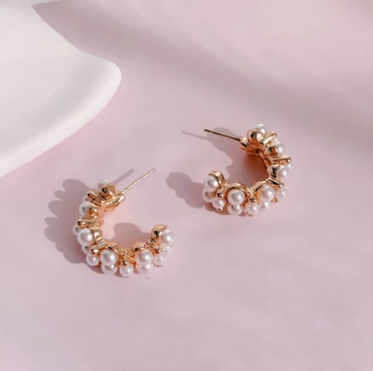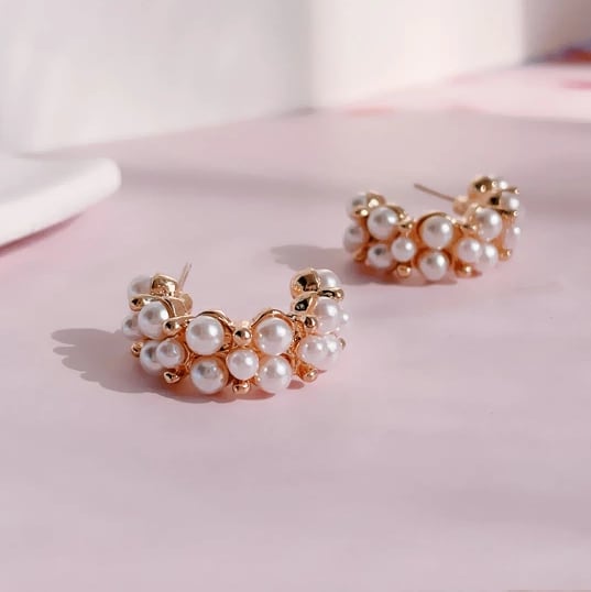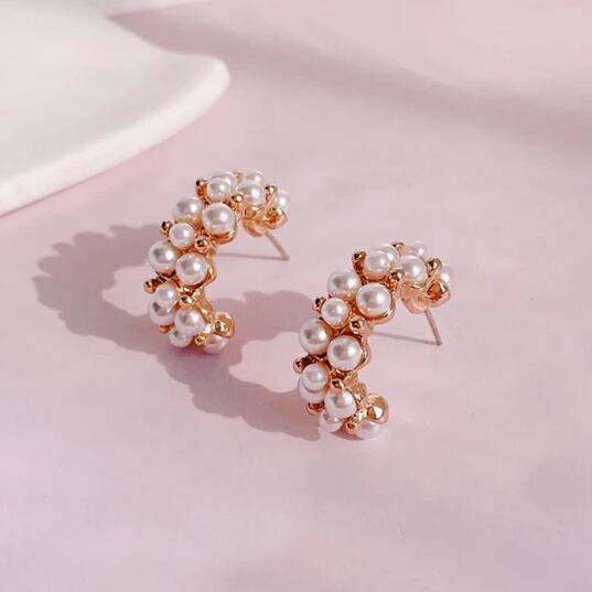 胸元に華やぎをプラス、Leafyのパールを贅沢にあしらった半円形ピアス!
