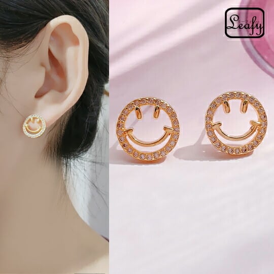 Leafy明るい印象を与える スマイルピアス にこちゃん にっこりとほほ笑む表情が愛らしくてみているだけ幸せな気分になれそう 輝きの良い CZダイヤモンドをパヴェセッティングした幸運のスマイリーピアス プレゼント オンオフ問わず sr01429y 母の日