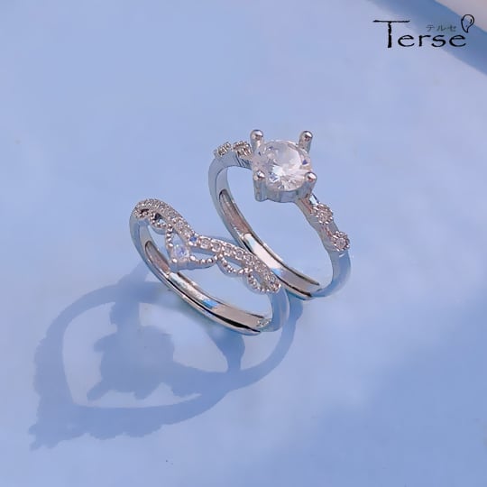 Terse 可愛いレースグロッシーセットリング 同じ指に重ねてみたり、両手にコーディネートにしてみたりしてその日のコーディネートで楽しめる 輝きを中心に集めたV字リングと横に広いハーフエタニティーの雰囲気のリング V字効果で指がきれいに見えます rs0334as