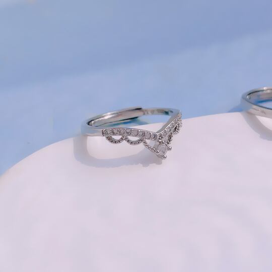 「Terse☆この可愛いレースグロッシーセットリングは、デザイン性と機能性を兼ね備えたアイテムです☆ V字リングは清楚な輝きを放ち、横に広がるハーフエタニティーリングとの重ねづけで、個性的かつ洗練された印象を与えます。V字効果により、指を美しく見せるこのリングは、さまざまなコーディネートに調和し、あなたのスタイルを引き立てます!毎日の装いをより特別なものにするために、ぜひお楽しみいただきたいリングです。」