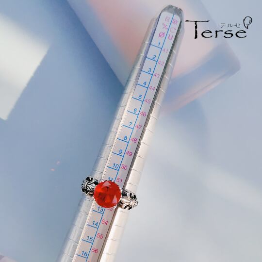 Terse シルバー925素材のクラウンベゼル(王冠の縁取り)が、存在感のあるレッドストーンを優しく包み込み、優雅なアンティーク風の仕上がりになるCZダイヤ指輪 アーム部分はフランス王室象徴の百合をデザインされて、微調整も叶うフォークリング カジュアルrs0329a
