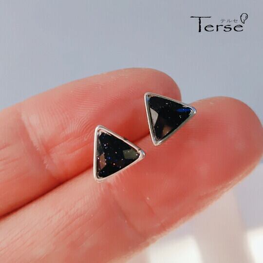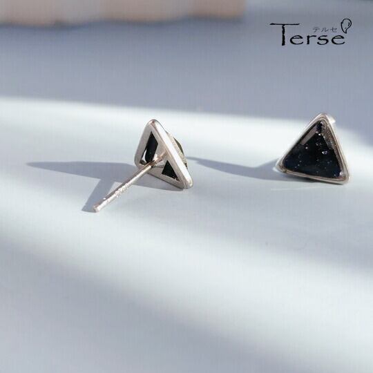 Terse きらきらラメ入り☆漆黒の透明感がシックで大人っぽい印象に ピアス 1ペア トライアングル 三角形 レディース メンズ ユニセックス シンプルなデザイン 小ぶり 使い勝手抜群 ワンポイント イベント パーティー デート 普段使い プレゼント se0193a