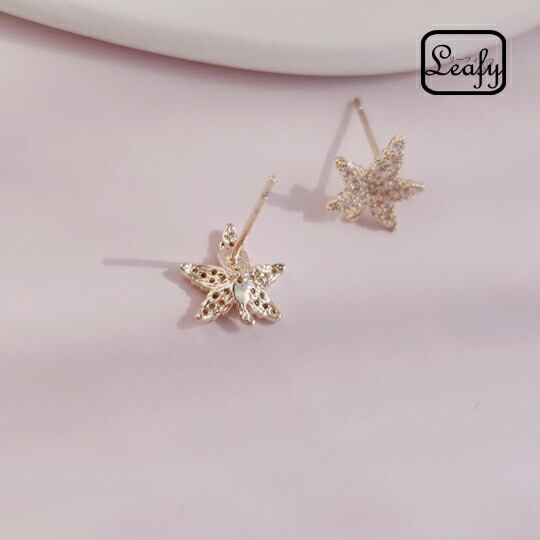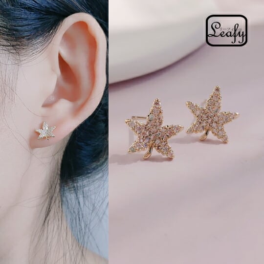 Leafy 高品質キュービックジルコニアで描き出した紅葉モチーフピアス 四季を繊細かつモダンに具現化してきたアクセサリー 高級感溢れる かえで 楓 もみじ 花言葉は「大切な思い出」「美しい変化」プレゼント 秋 ゴールド CZダイヤ 14KGP ゴールドメッキsr01762yg
