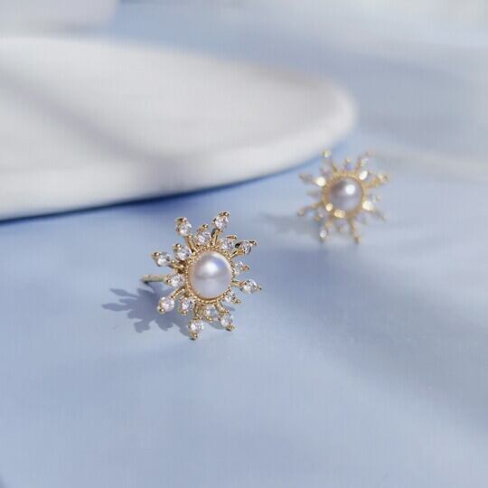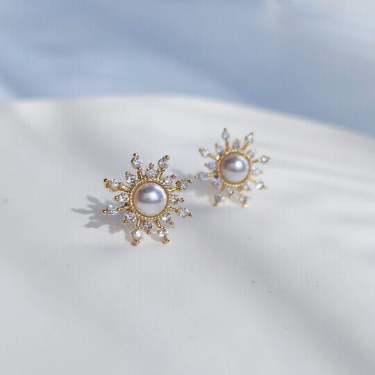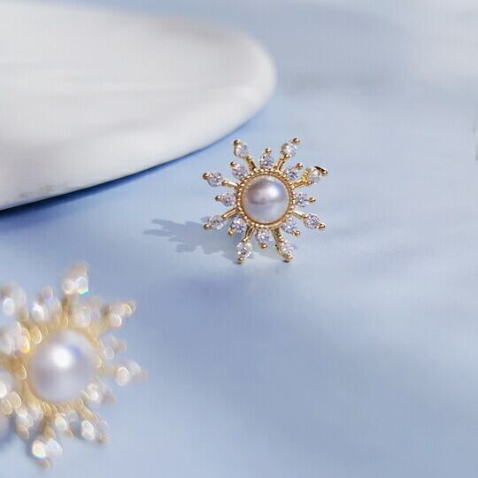 Leafy キュービックジルコニアのきらめきで太陽の輝きを表現したパールピアス ゴールド×パールの柔らかな輝きが肌に馴染むエレガントなアイテム タイムレスでエレガンスなアクセサリー 一日を通してどんなスタイルも輝かせてくれます 天気 サンシャインsr01990y