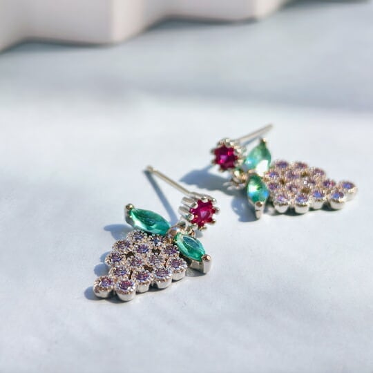 大人の女性にぴったりな華やかな果物ピアス!「Leafy 透明感あるキラキラジルコニア葡萄ピアス」は、鮮やかなゴールドに仕上げられたデザインが特徴の魅力的なアイテムです。ジルコニアの輝きが美しい葡萄の形を引き立て、様々なシーンでコーディネートのアクセントとして華やかさをプラスします☆
