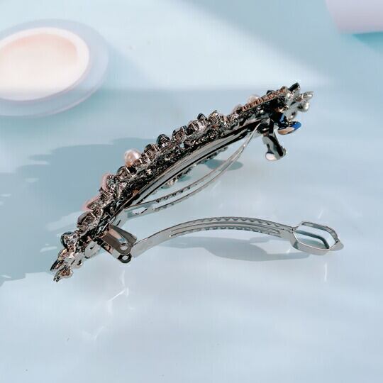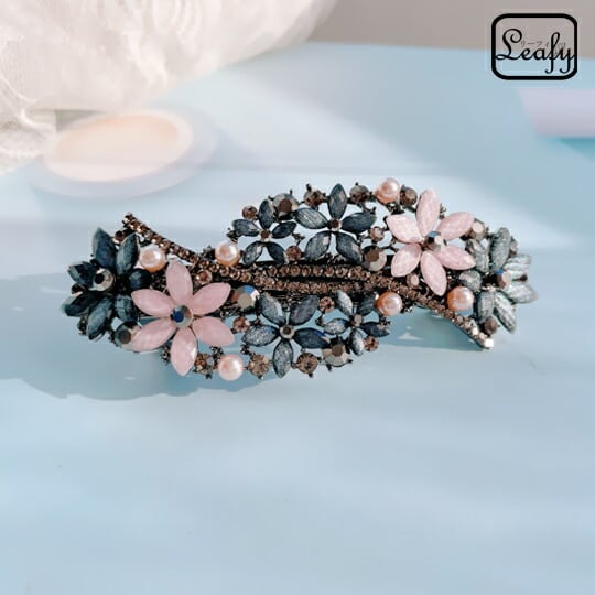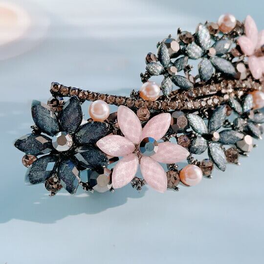 Leafy ラグジュアリーな輝きが印象的なフラワービジューバレッタ 可愛いフラワーフォルムのバレッタは大人も楽しめる可愛さ ヘアアクセサリー ヘアアレンジ まとめ髪 髪留め ビジュー 花 華やか エレガントママ ミセス 清楚 リラックス 美人ベーシック 休日 ha0157apk