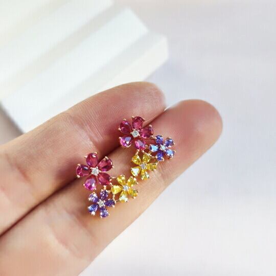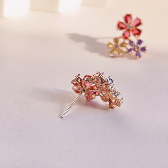 Leafy きらめき3色☆ジルコニアフラワーピアス レディース 1ペア レッド・イエロー・パープルのスリーカラーが耳元を可愛く飾ってくれる フェミニン お出かけ デート お呼ばれ パーティー 食事会 女子会 普段使い プレゼント sp0170apg