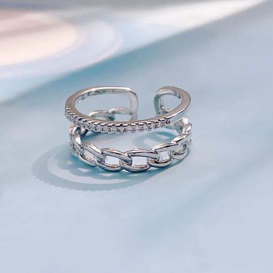 Terse 2連 チェーン風CZダイヤ オープン リング キラキラと輝くチェーンは指元を華やかに飾ります サイズフリー 指輪 ギフト チェーンデザインもハードな印象にならず、さりげなくお使いいただけます プレゼント キュービックジルコニア フォークリング rs0215as