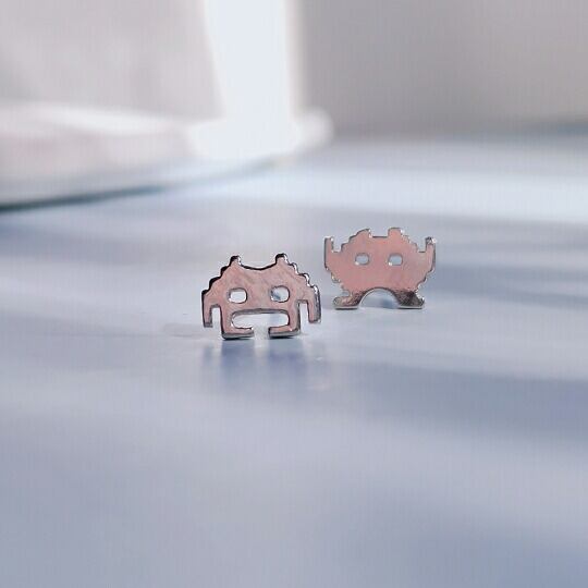 Terse 80年代に世界中を熱狂させたゲーム スペースインベーダー小さいぶりピアス アーケードゲームにリアルタイムで熱狂した世代には懐かしくノスタルジックに映り、若い世代にはレトロに感じながらも新鮮なカルチャーとして映る アクセサリー sa0186a