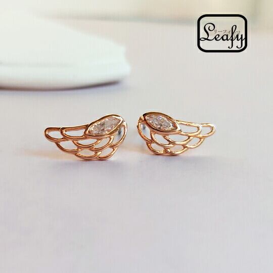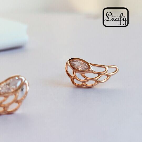 Leafy☆天使の翼/羽根ピアス 可愛い天使の耳元に。華麗に羽ばたく、、女性らしい美しいデザインで耳元をキュートに演出してくれます。ピンクゴールド(pink gold)x04326a【定形外・メール便対応】☆☆参観日・フォーマル・女子会・デートにも♪