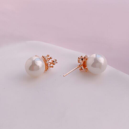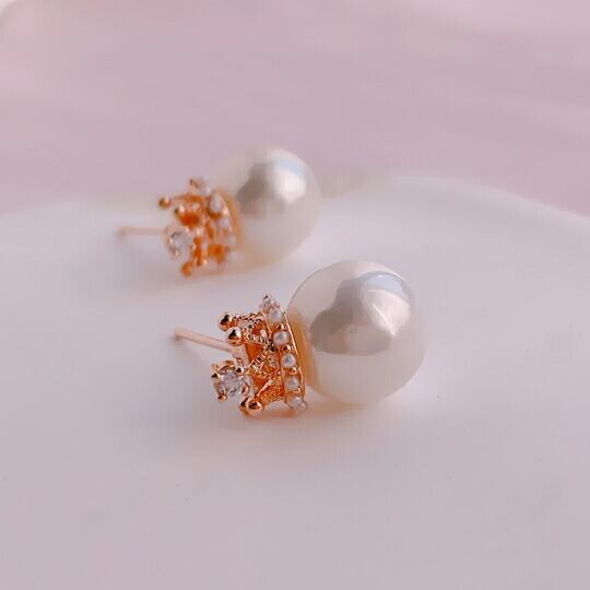 Leafy王冠/クラウン真珠ピアス フェイクパール ピンクゴールド (pink gold) x05226apg【定形外・メール便対応】 6月誕生石 ご褒美 自分用 普段使い 通勤用 旅行 パーティー イベント デート ディナー お出かけ 誕生日 冠婚葬祭