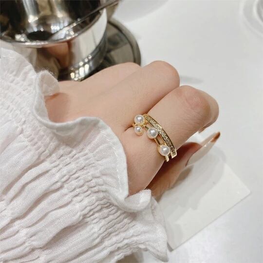 Terse お手元を洒落感たっぷりに彩る 不規則な位置に、大小不規則なフェックパールをあしらった、都会的でお洒落なリング シンプルなスタイリングにさっと着けていただけば、一気に雰囲気が華やぎます ゴールド色アームに、パールをアトランダムにセットしました rs0343a