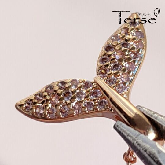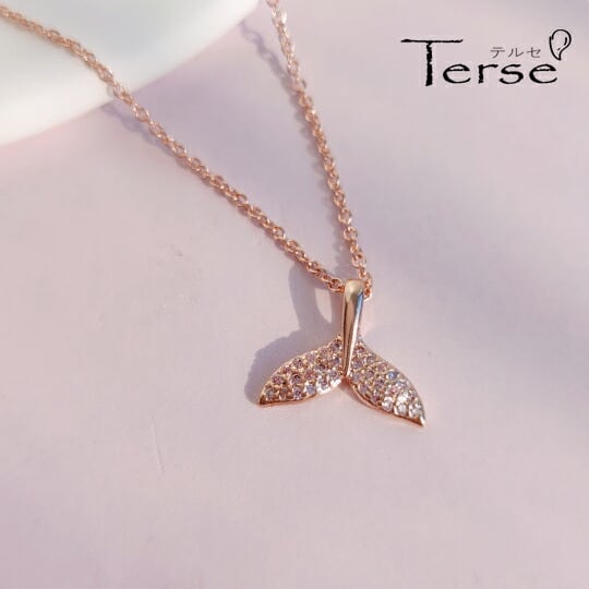 Terse CZダイヤモンドで敷き詰められたクジラのシッポネックレス 綺麗な曲線が裏表なしに造形されています クジラのしっぽが垂直に海に表れる様子が見られると幸せになれると言われているラッキーモチーフのホエールテイルキュービックジルコニアペンダント sn0324a