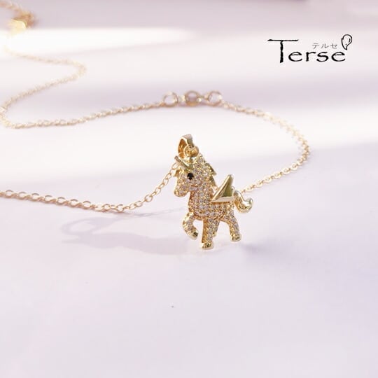 Terse ギリシャ神話に登場するペガサスをモチーフにしたCZダイヤネックレス 翼を使って天空を駆ける天馬 シンプルでありながらエレガントで、フェミニンな魅力があります ベーガソス ユニコーン キュービック・ジルコニアを散りばめております sn0310a