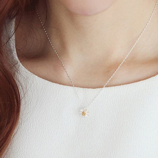 Terse ネックレス ペンダント レディース デイジー カモミール マーガレット ノースポール 雛菊 ひなぎく 花言葉:美人/美 フラワー 花 かわいい お出かけ パーティー デート 普段使い プレゼント S925 SN0141A 9月誕生花
