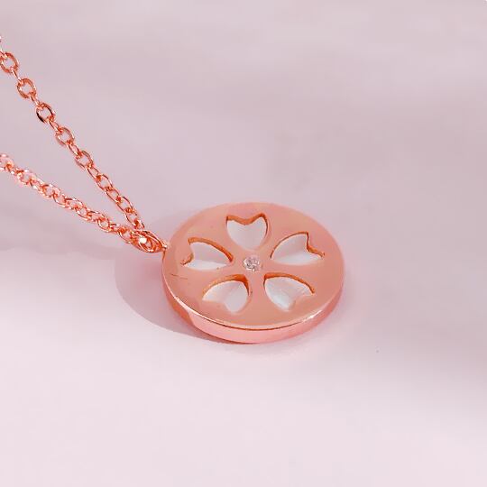 Terseマザーオブパールでさくらのはなびらを表現したラウンドペンダント シンプルで洗練されたデザイン どんな服装にも合わせやすい色合いのピンクゴールドペンダント 桜花爛漫の光輝く春の季節を思い出させてくれる可憐なペンダント 桜 4月誕生花 春 sn0378a