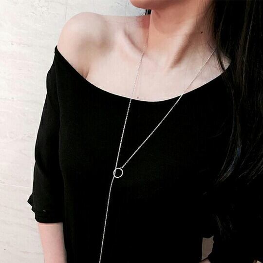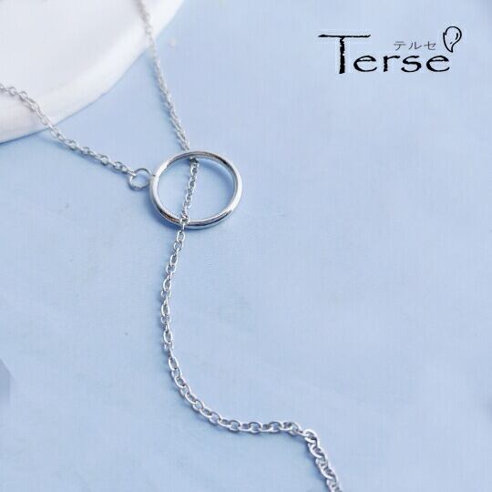 Terse 華奢なチェーンの先にリングモチーフをあしらった、Y字 ラリアットネックレス スネークチェーンとデザインチェーンのシンプルで華奢なラインが、上品な大人っぽさを演出 ざっくり胸元が開いた服や、首元の詰まったタートルネックにもよく映えるアイテです sn0336a