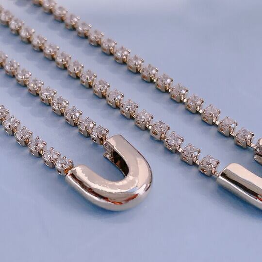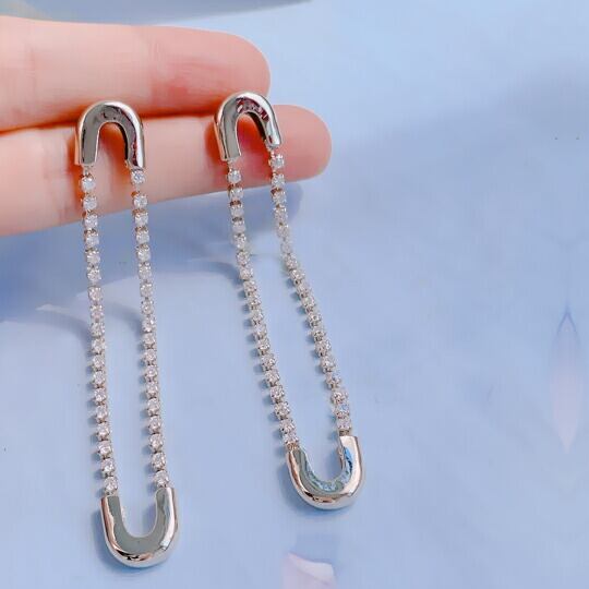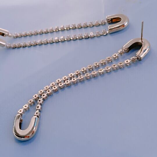 Leafy ビジューチェーン安全ピンモチーフロングピアス 輝き 煌き 存在感 インパクト エレガント モデン ドレープなデザインのシックな雰囲気をたたえ どの角度からも見ても美しく、品良く身につけられるデザインが魅力です 大振り CZダイヤ フェースラインsr00754ybg
