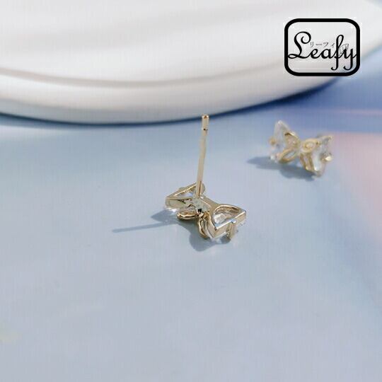 Leafyピアス 1ペア レディース クリア&ゴールド リボン 蝶 バタフライ 上品 エレガント 大人可愛い 甘くなりすぎない 大人っぽい 立体感 煌き お出かけ パーティー イベント 結婚式 二次会 パーティー お呼ばれ デート 普段使い sr00543agc 14KGP ゴールドメッキ
