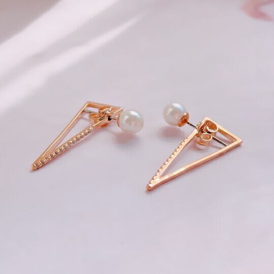 Leafy お洒落なトライアングル2wayピアス 1ペア レディース 三角 パール 上品 大きめ シンプルで使いやすいデザイン 人気 お出かけ イベント パーティー 二次会 食事会 女子会 デート 普段使い sr00528a