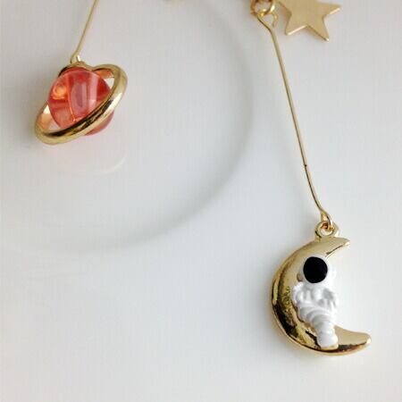 Terse ピンクプラネットと宇宙飛行士☆わくわく楽しい月旅行ピアス 1ペア レディース コスモ ムーン スター 地球 アース 土星 夜空 アクセント 普段使い お出かけ パーティー イベント 食事会 女子会 デート プレゼント ギフト se0254apk
