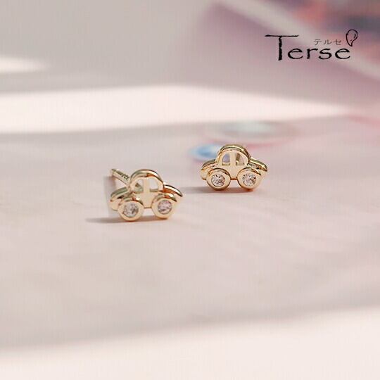 Terse本物の車をそのままミニチュアにしたリアルなフォルムがとびきりチャーミング このくるまモチーフピアスを耳元にしていれば、お出かけのお誘いも増えそう ドライブのお供に ゴールドカラーの車ミニピアス 小さいぶり旅 ツアー プレゼント お出かけ se0238a
