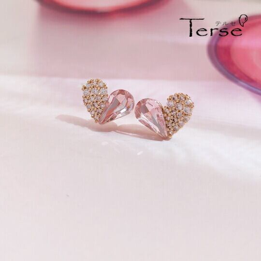 Terse女性が大好きなハートにCZダイヤモンド&ピンクビーズを敷き詰めた贅沢なピアス 身に着ければ気分もHAPPY ゴールドカラーは見た目にも華やかな印象を与えてくれます デイリーユースからパーティーシーンまで様々なシーンでお使いいただけますse0314a