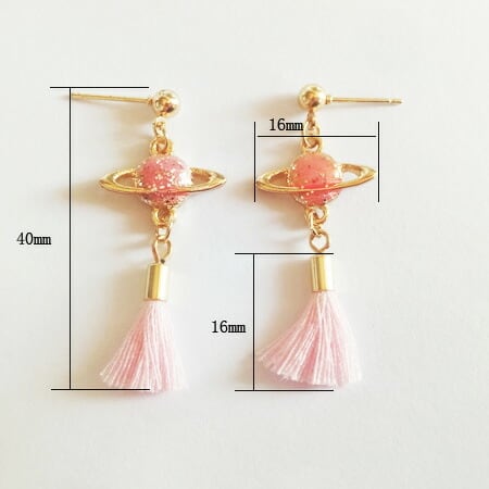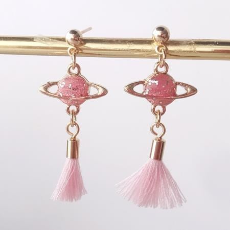 Terse ラメが煌く桜カラー☆タッセル付き惑星ピアス 1ペア レディース ピンク 土星 サターン 夜空 宇宙 天の川 ミルキーウェイ お出かけ リゾート ピアス イベント デート パーティー 普段使い プレゼント se0215apk