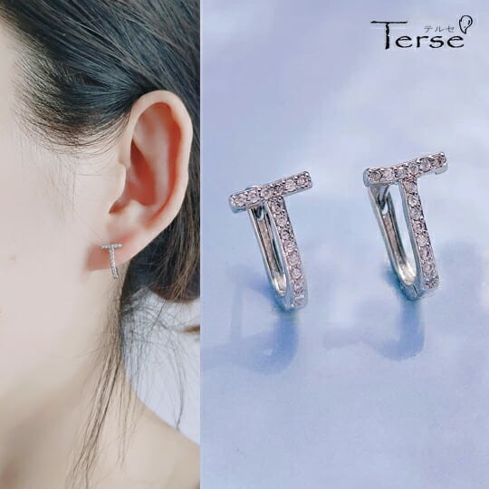 Terse T字モチーフのレディース用CZダイヤフープピアス オンオフ問わず活躍してくれそう モダンなムードを演出して 自分用はもちろん、プレゼントやギフト用としてもオススメ 毎日のスタイルにも、印象的なルックを演出するのにもぴったりなアイテム se0318as