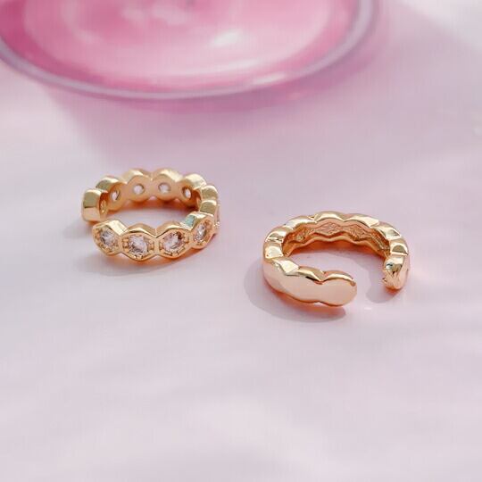 Terse ハニカムが可愛いイヤーカフ2個セット 1つはシンプルなデザインで、もう1つはCZダイヤが付いていて一緒に着けると可愛い 大人の女性にもおすすめのミニマルなデザイン イヤーカフやピアスとの重ね着けにも活躍するアイテムで旬なレイヤードを楽しんでse0323a