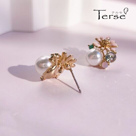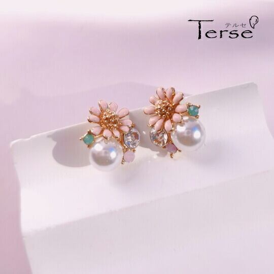 Terse ピアス 1ペア ピンク フラワー 花 ビジュー パール カラフル 華やか キュート 可愛い 上品 お洒落 春 立体 存在感 デイジー コスモス お出かけ イベント デート 結婚式 お呼ばれ パーティー 入学 入園 卒業 卒園 普段使い プレゼントsp0126apk