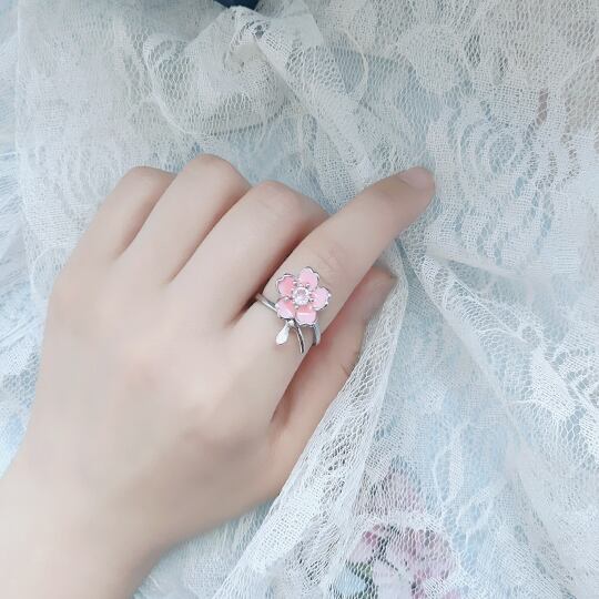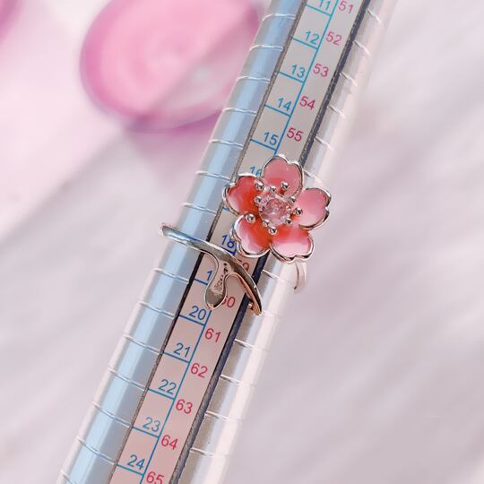 Terse 4月の誕生花(バースフラワー)さくらをモチーフにした愛らしいデザインのフォークリング まるで甘く香り立つ薄ピンクエナメル桜花指輪 誕生花が持つ特別な花言葉のリングは、お守りジュエリーとしてご自分へのご褒美や贈り物にもおすすめ 春 rs0357a