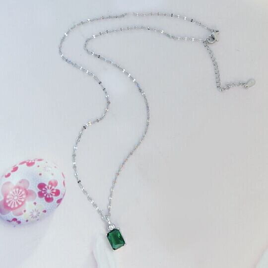 Terse シンプルなエメラルドグリーンCZダイヤのペンダント 美しい鮮やかな緑色のキュービックジルコニアが胸元を華やかに演出してくれます バチカン部分には透明なCZダイヤを1石あしらい、細やかなこだわり 透明感のある煌きと美しい色調が魅力的な一品 sn0345as