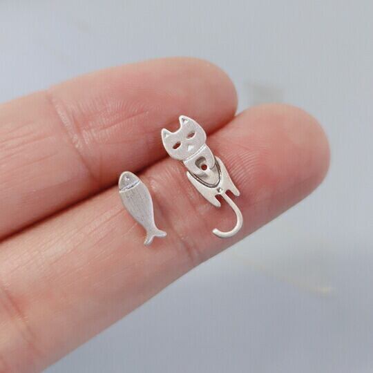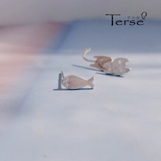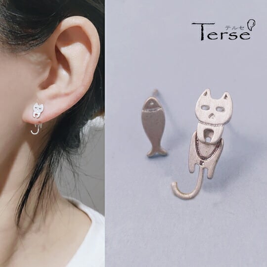 Terseピアス 1ペア レディース 猫 キャット 横目 尻尾 しっぽ ゆらゆら 組み合わせ セット 立体感 魚 フィッシュ キュート 可愛い 人気 お出かけ パーティー デート 普段使い プレゼント 即購入OK 最短当日〜翌日発送 S925