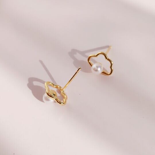 Terse 小さめな小粒パールと雲のもくもく感が特徴的なピアス 大人可愛い シンプルでおしゃれなデザイン カジュアルな服装からフォーマルな服装までさまざまなコーディネートに合わせられます 上品にさりげなく、だけど少し個性的に身に付けたい方などにおすすめ se0330a