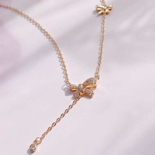 華やかな輝きで魅了する、リボンモチーフのY字ネックレス!「Terse 女性に大人気のリボンモチーフのCZダイヤペンダント」は、合計23石ものキュービックジルコニアをあしらったデザインが特徴で、胸元を華やかに演出します。揺れるCZが放つ存在感は、個性的なシルエットを作り出し、どんなコーディネートにも品を与えます。気品ある輝きが感じられるこのY字ネックレスは、特別な日から普段使いまで幅広くお楽しみいただけるアイテムです。