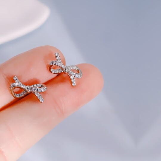 Leafy リボンを結ぶように「人と人を結びつけてくれる」リボンモチーフピアス シルバー色×CZダイヤモンドが上品な印象を与えてくれそう キュービックジルコニアがさりげなく輝きます 甘すぎないシンプルなデザインなので、大人可愛いアイテムです 4月の誕生石 x09478a