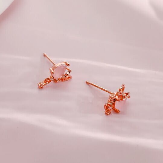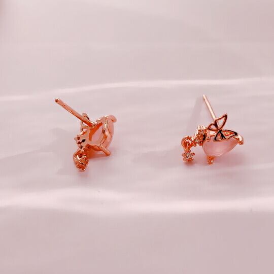 「Terse 可愛らしい蝶がお花びらのまわりを飛んでいる様子をデザインしたピアス」は、肌に優しいピンクゴールドで仕上げられており、美しいピンク石と透明感のあるキュービックジルコニアが特徴です。ヒラヒラと自由に飛んでいる蝶のデザインは、爽やかな印象を与え、日常使いにも特別なシーンにもぴったりなアイテムとなっています。耳元を華やかに彩るこのピアスは、様々なコーディネートにマッチし、あなたの個性を引き立ててくれます!