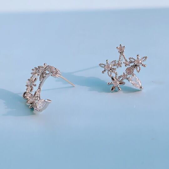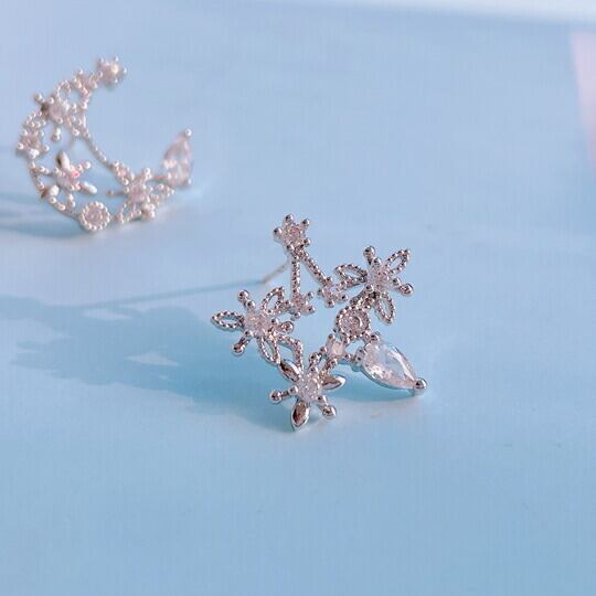 夜空の美しさを耳元に、Leafy スターとムーンアシンメトリーなピアス!