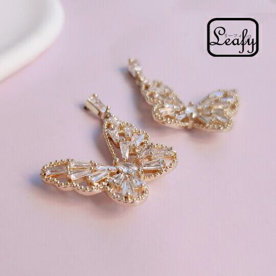 華やかな蝶の舞を耳元に、Leafy上品なCZダイヤの羽根が煌く☆耳元にひらひら舞い降りたバタフライピアス!