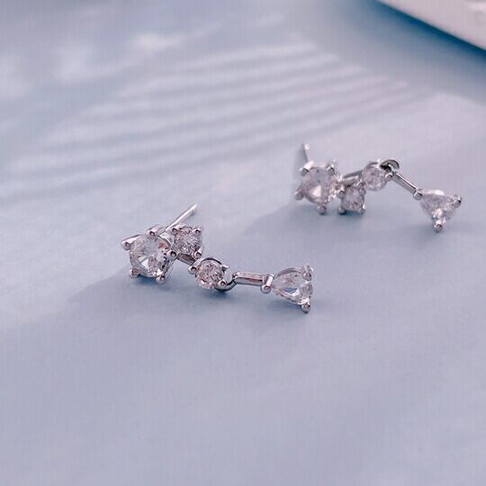 Leafy シルバーとCZダイヤをリズミカルにセッティングしたピアス 一番下のトパーズがさりげなく揺れ、うるうるとした瑞々しさが感じられます 銀色ですっきりとした印象もプラスされ、横顔を明るく爽やかに演出してくれます 普段使いに程よいジルコニアピアスx09444a
