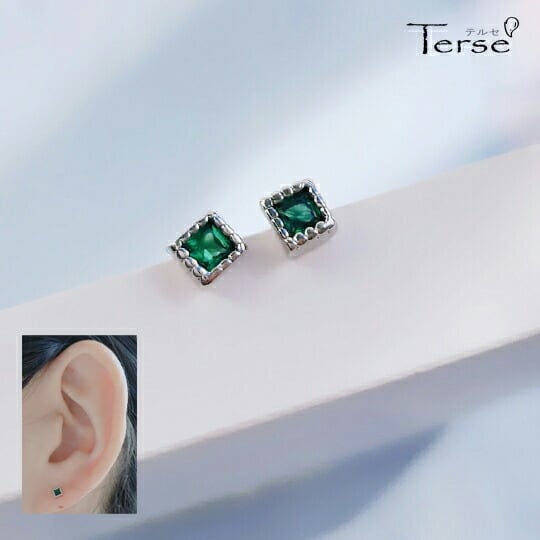 この「Terse 小さいぶりミル打ちの枠にスクエアカットと呼ばれてます四角い形をしたエメラルドグリーン CZダイヤドをセッティングしたシンプルな定番スタッドピアス」は、5月の誕生石を取り入れた魅力的なデザインが特徴です。華奢なサイズ感とシンプルなスタイルが、日常使いからオフィスシーンまで幅広く活躍し、大人の女性の魅力を引き立てます!