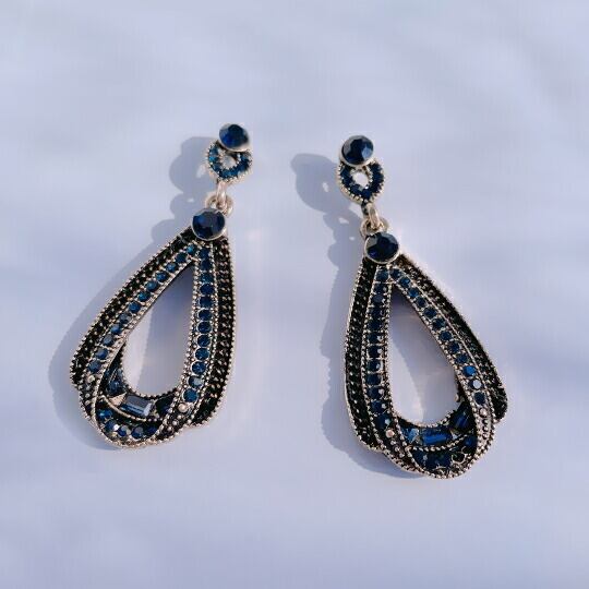 Leafy優しい印象のサファイア色 リボンをモチーフにしてモダンなデザインに仕上げました ビジューピアス 贅沢に敷き詰めたCZジルコニアが、装う人の心も輝かせます。大振りピアス バレンタイン 彼女 ギフト 大人可愛い バレンタインギフト 記念日 デート se0095a 9月誕生石
