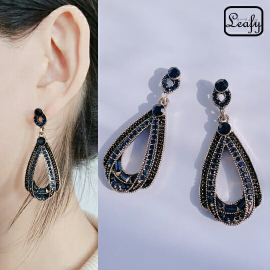 ■優しいサファイア色リボンが耳元を華やかに演出!Leafyの「リボンモチーフビジューピアス」で、あなたのスタイルに洗練された美をプラスしましょう!