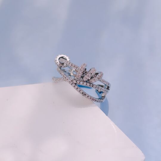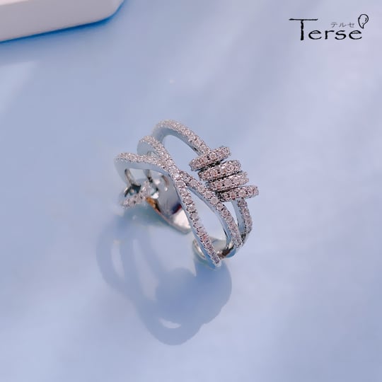 Terseクロスさせた3連リングのようなデザインのCZダイヤリングは程よいボリューム感とニュアンスのあるラインが美しく女性らしい手元に導いてくれます キュービックジルコニア フォークリング サイズフリー 贅沢 バレンタイン 彼女 ギフト 大人可愛い バレンタインギフト 記念日 デート rs0232as