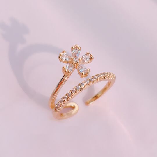 花の中に秘めた優雅さを感じるフラワーデザインのCZダイヤフォークリング!Terseの「花の茎を腕で表現をした指輪」で、指先に洗練された美しさをプラスしてみませんか?